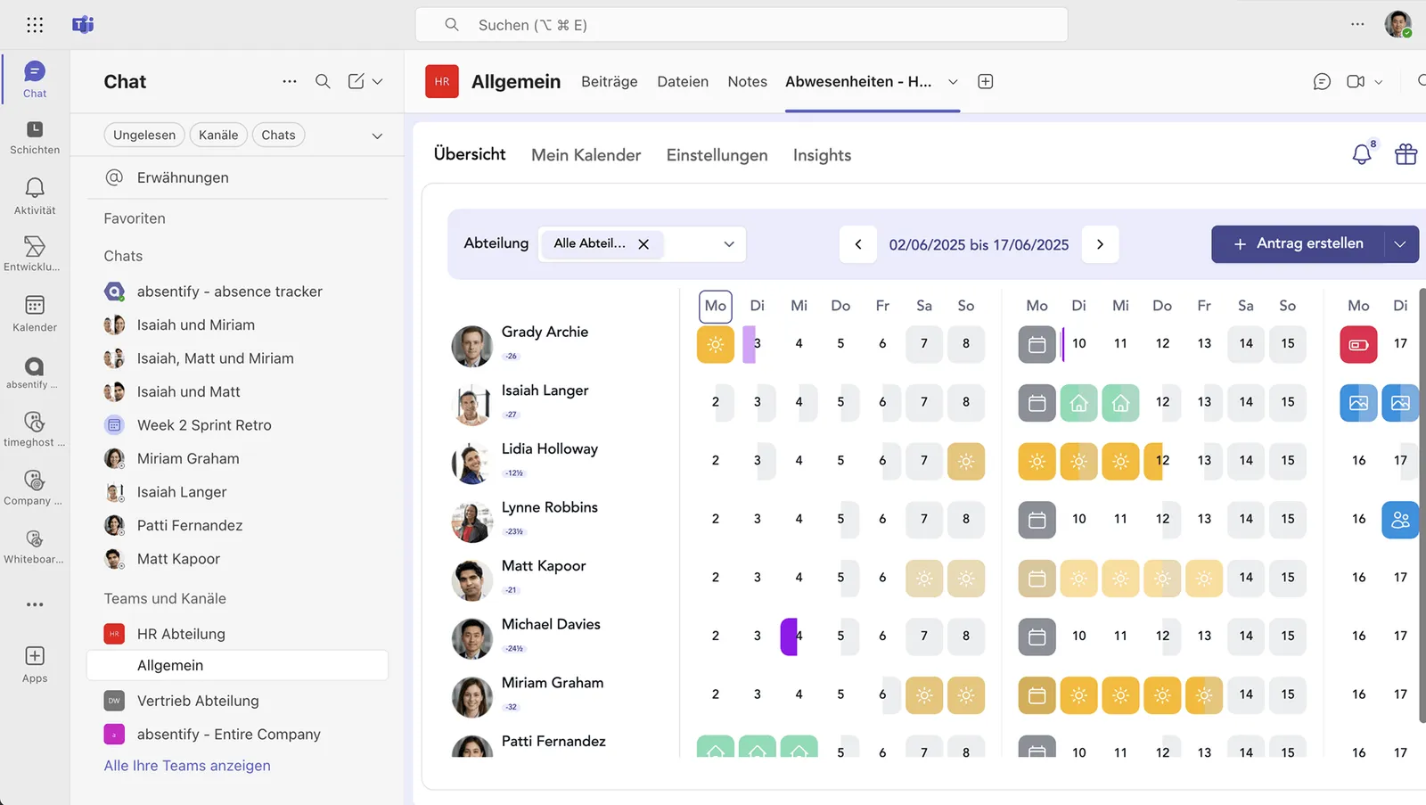 Behalten Sie den Überblick über alle Abwesenheiten im Unternehmen.