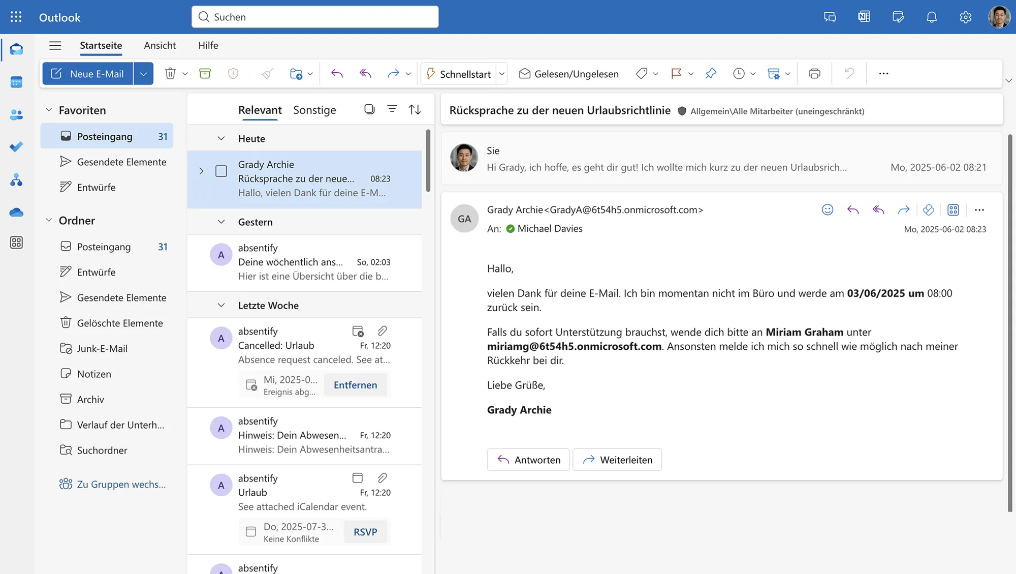 Deine Urlaubs- und Abwesenheitsplanung, voll integriert in Microsoft 365